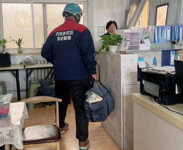 “大爷阿姨,送餐来了。”53岁的昝铁军嗓门洪亮,一声吆喝,楼道里顿时有了生气。他是一名美团的外卖工作人员,四年前经老乡介绍,成了齐东路社区助老食堂的送餐员。