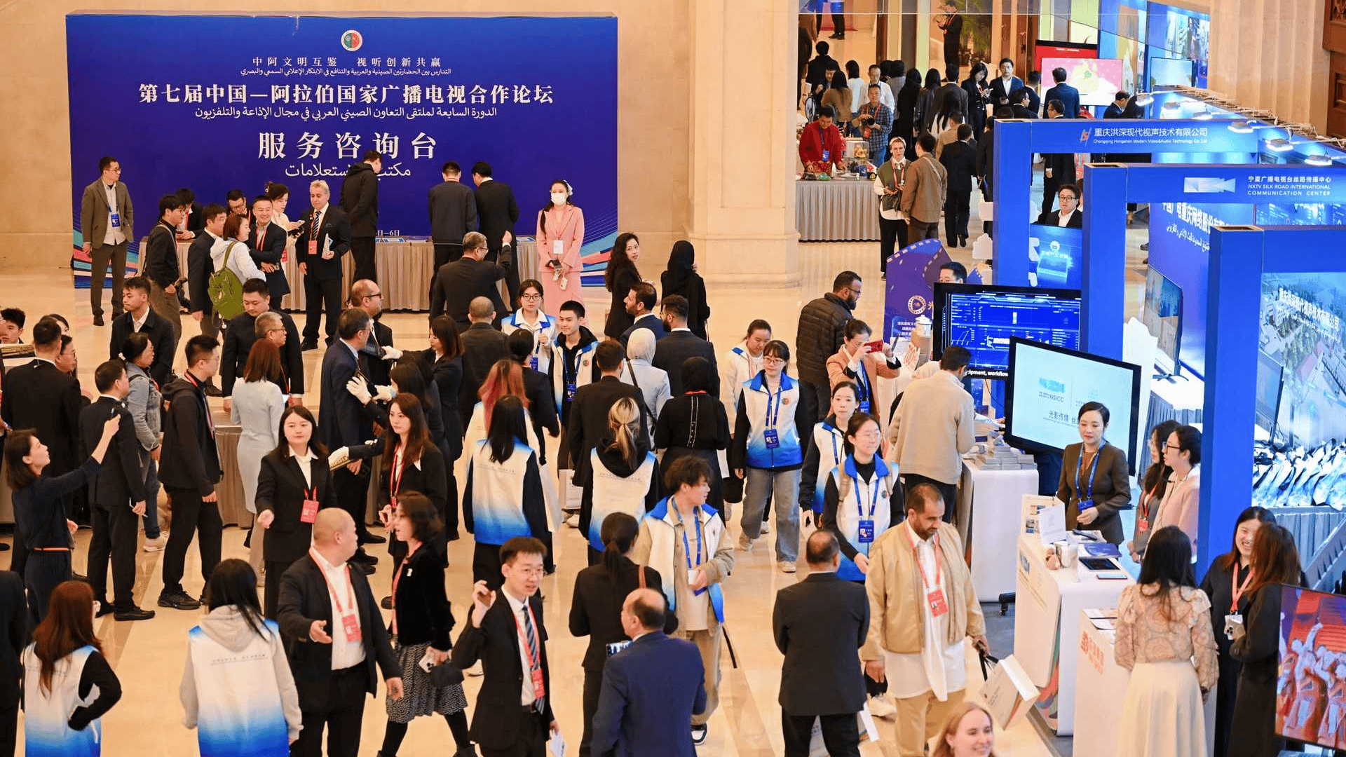 来自中国和阿拉伯国家的多家主流媒体机构、科技企业与文化传播单位齐聚一堂,15个企业展台和3个非遗展台共同呈现了一场跨越山海、连接心灵的视听盛宴,生动诠释了中阿双方在广电视听领域深化合作、共创未来的美好愿景。