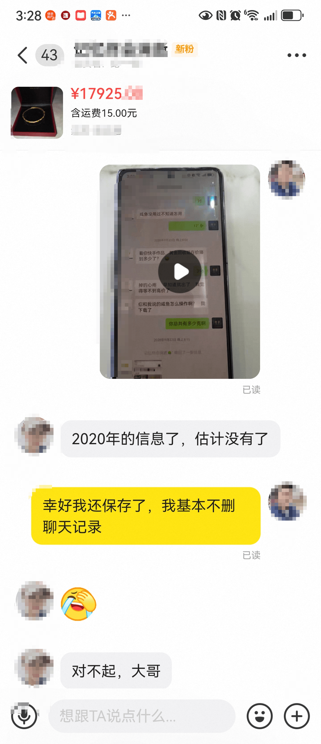 为自证清白,张先生翻出了一段尘封六年的聊天记录。记录显示,这笔交易始于2020年9月。当时,这位外地卖家通过社交平台添加了张先生的微信,咨询黄金变现事宜,并提到因金价下跌严重,有意出售一只金手镯。张先生随即依据实时金价给出报价,并建议对方先在当地金店称重后再做决定。最终,卖家决定将手镯出售给他。