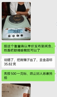 考虑到是异地交易,为保障双方权益,张先生提议在二手交易平成流程。卖家表示不熟悉平台操作,张先生便一步步指导对方上架商品。为避免手镯被他人抢拍,他建议卖家暂时将标价按高于市场价的500元/克设定,即标为17910元,待其拍下后,再修改为双方协定的实际交易价14092元。卖家同意后,交易顺利完成。