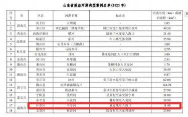 近日,山东省河长制办公室发布了2025年度省级效益河湖典型案例名单,环翠区羊亭河成功入选,其创新经验做法被全省推广。