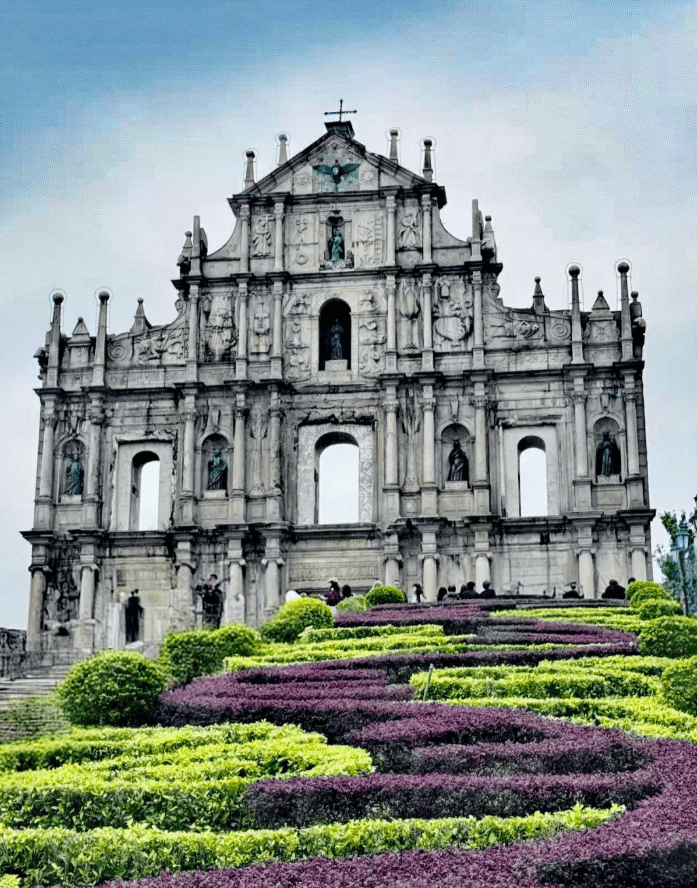 清晨乘坐港珠澳大桥穿梭巴士,约40分钟直达澳门。这座世界级工程本身就是一道风景。第一站便是世界文化遗产——大三巴牌坊,周边小巷藏着博物馆、手信店和咖啡馆,避开人流高峰更能拍出大片感。随后登上炮台山,俯瞰澳门半岛全貌;接着参观金莲花广场与妈祖庙,了解澳门作为海上丝绸之路重要节点的历史脉络。晚上阿兵推荐了几家本地人常去的葡国菜小馆,地道又实惠。整个行程衔接流畅,毫无疲惫感。