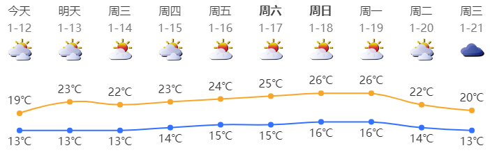 深圳今日阴天间多云,局地偶有零星小雨;气温12-19℃;东风2-3级;相对湿度35%-80%。