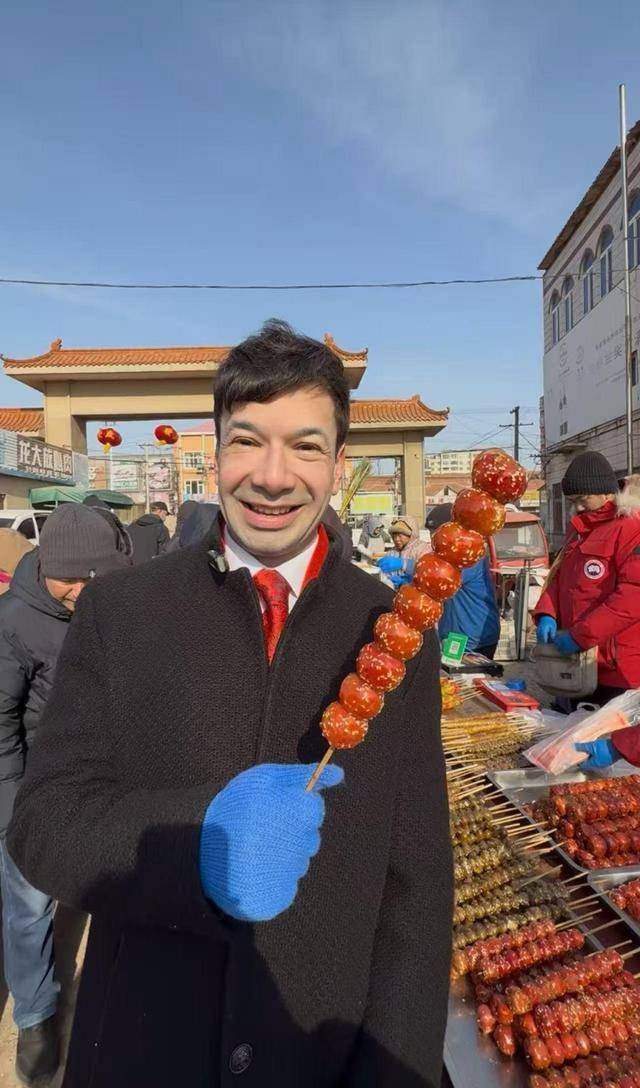 对于来自英国的理查德来说,融入中国年的方式,是走进河套大集那片热气腾腾的烟火气里。作为在中国生活十年、娶了聊城姑娘的“洋女婿”,他早已是半个“中国通”。
