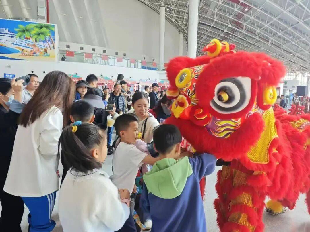 徐闻港则以“马”为媒,融合2026马年主题与海南自贸港元素,精心布置港区环境,启动琼州海峡(徐闻港)旅游服务中心。春运期间,港内设有“醒狮送福”、“黎族竹竿舞”、“鼻箫独奏”等具有海南文化色彩的节目表演,旅客可在此翻阅书籍、了解景区信息、购买粤琼两地手信及邮寄明信片。候船厅还开设了“美食街”,供旅客品尝徐闻当地特色小吃。元宵节期间,徐闻港还将推出系列暖心活动,让旅客在旅途中感受家的温暖。