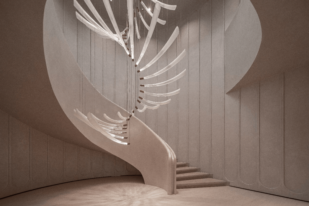 ③约270度弧面转角。重塑景观和建筑的关系,于外创造更柔和的建筑视觉效果,从内部也能打开更广角的观景视野。