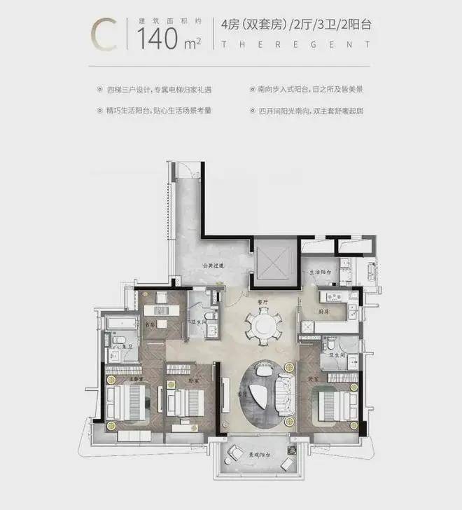 【C户型】约140㎡南向园景大宅 ✨✨南天名苑售楼处电话:【售楼处电话已认证】✨✽✽✽✽