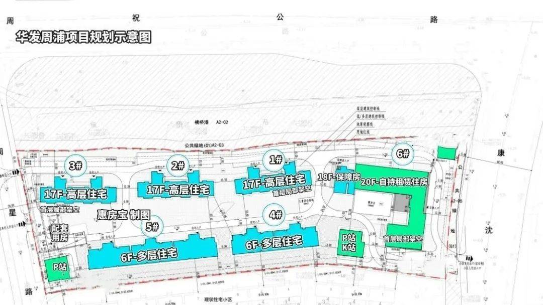 根据设计方案显示,项目拟建3栋17F高层住宅、2栋6F多层住宅、1栋18-20F保障房+自持租赁住房以及若干社区配套用房,可售住宅仅约262套;同时从设计方案也可以看出,项目有预留14个地上车位,非完全人车分流,小区出入口位于康沈路和周星路。